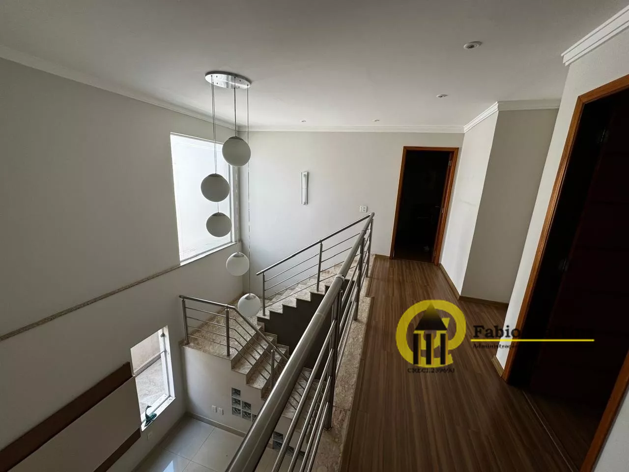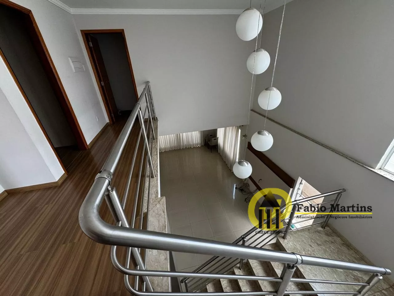 E no piso superior com mezanino, 3 suítes, sendo a máster closet e varanda.