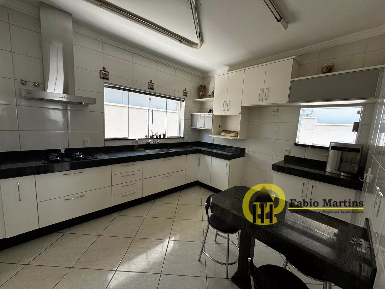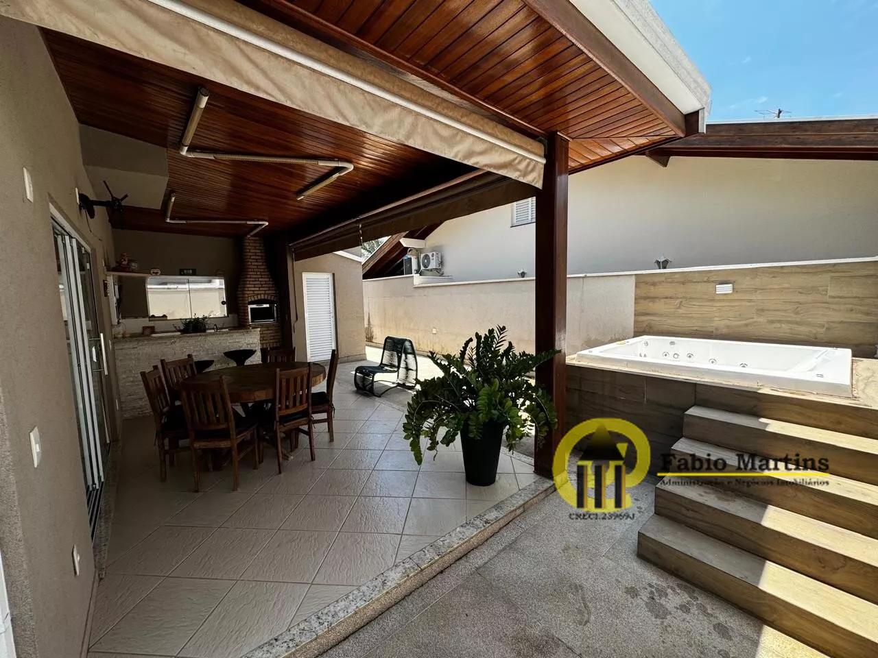 No primeiro piso: sala ampla com 2 ambientes integrados, lavabo, escritório reversível em dormitório, cozinha, lavanderia e quintal com espaço gourmet com pia, fogão, churrasqueira, lavabo externo e SPA com hidromassagem.
