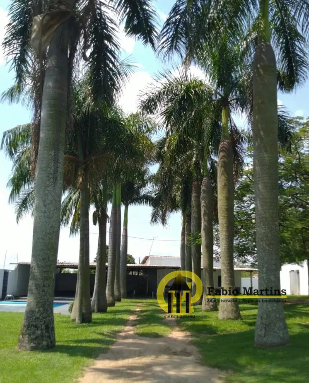AMPLA ÁREA VERDE, COM PALMEIRAS E JARDIM